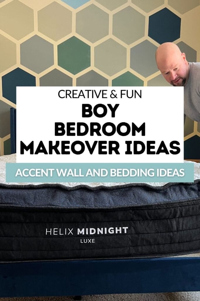 Back in 2019, I had painted a DIY hexagon accent wall for a fun kid’s bedroom idea. The original wall was painted in a pink-and-gray color scheme. While we love this wall, we knew we needed to change it for our son!